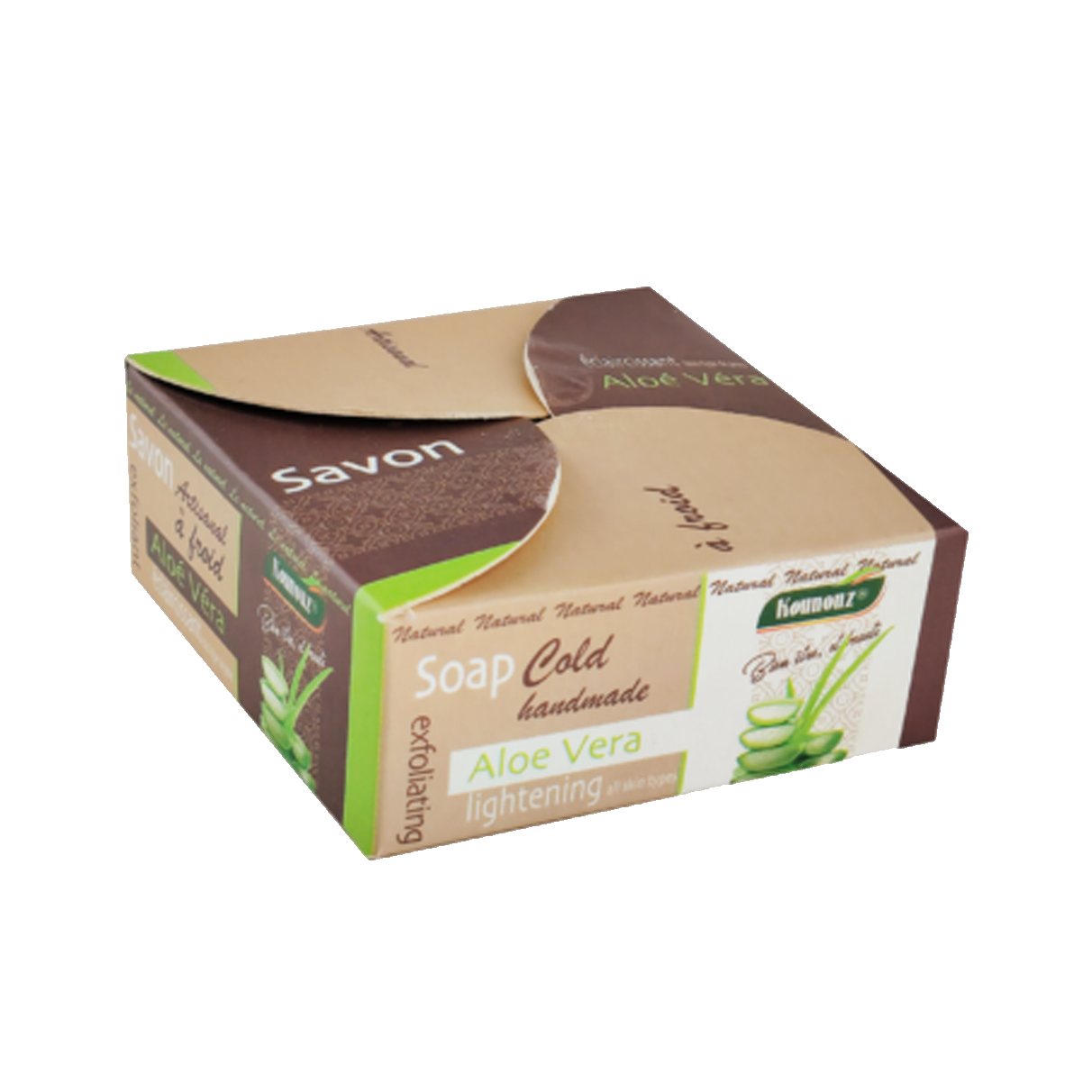 صابونة الألوفيرا الطبيعية من كنوز – “مُفتّحة” – مصنوعة بطريقة التحضير على البارد، تنظّف البشرة بلطف، وترطّبها، وتساهم في توحيد لونها ومنحها إشراقة طبيعية. وذلك بفضل الخصائص المهدّئة والمجدّدة لنبتة الألوفيرا.
