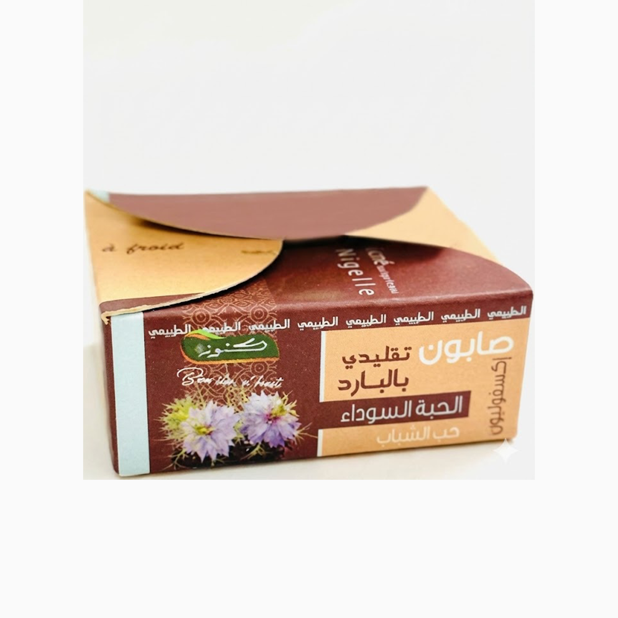 The KOUNOUZ Cold-Processed Black Seed Soap is a handmade natural soap, ideal for gently cleansing and purifying the skin. Enriched with black seed oil, it nourishes, hydrates, and helps protect the skin while maintaining its natural balance.