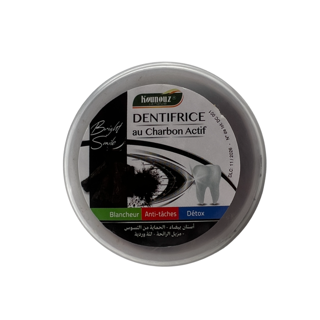 Le dentifrice au charbon actif KOUNOUZ offre un soin dentaire naturel qui aide à blanchir les dents, réduire la plaque et rafraîchir l’haleine tout en protégeant l’émail et les gencives.