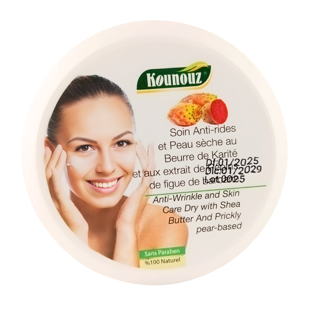 The KOUNOUZ Shea Butter Balm, enriched with prickly pear seed oil, provides intense hydration, helps prevent the appearance of wrinkles, and reduces age- or sun-related spots. Suitable for all skin types, it regulates sebum production in oily skin, nourishes dry skin, and soothes dark circles thanks to its powerful antioxidant properties.