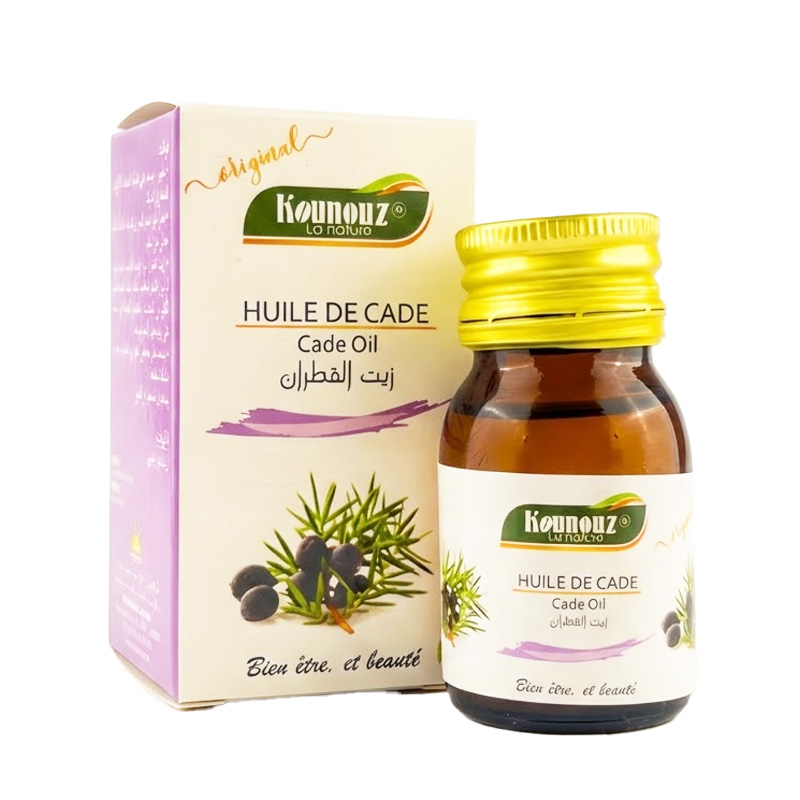 L’huile de cade naturelle de KOUNOUZ est un soin traditionnel aux multiples bienfaits pour la peau et le cuir chevelu. Réputée pour ses propriétés antiseptiques et purifiantes, elle aide à soulager les irritations cutanées, renforcer les cheveux et favoriser un cuir chevelu sain, tout en restant 100 % naturelle.