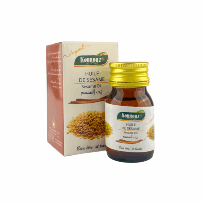 L’huile de sésame 100 % naturelle, extraite des grains de sésame, est un véritable trésor de bienfaits pour la peau, les cheveux et le bien-être général. Régénérante et assouplissante, elle pénètre rapidement pour maintenir l’hydratation tout en protégeant la peau grâce à ses propriétés antioxydantes. Elle agit contre les taches, les rides et le vieillissement cutané, tout en possédant des vertus anti-inflammatoires reconnues pour soulager les douleurs articulaires, comme la sciatique, les maux de dos ou les rhumatismes. Cette huile nourrit et embellit les cheveux, renforce les pointes et aide à prévenir leur chute, favorisant la croissance et l’hydratation du cuir chevelu. Riche en calcium, elle peut également servir d’écran naturel pour protéger la peau et les cheveux du soleil. En usage interne, 2 à 3 petites cuillères par jour contribuent à soutenir la digestion et à lutter contre la constipation, tandis qu’en application externe, elle s’utilise sur une peau propre avec un massage circulaire de 1 à 2 minutes sur le visage et le corps. Présentée en format pratique de 60 ml, cette huile polyvalente s’intègre facilement dans une routine quotidienne de soins naturels et complets.