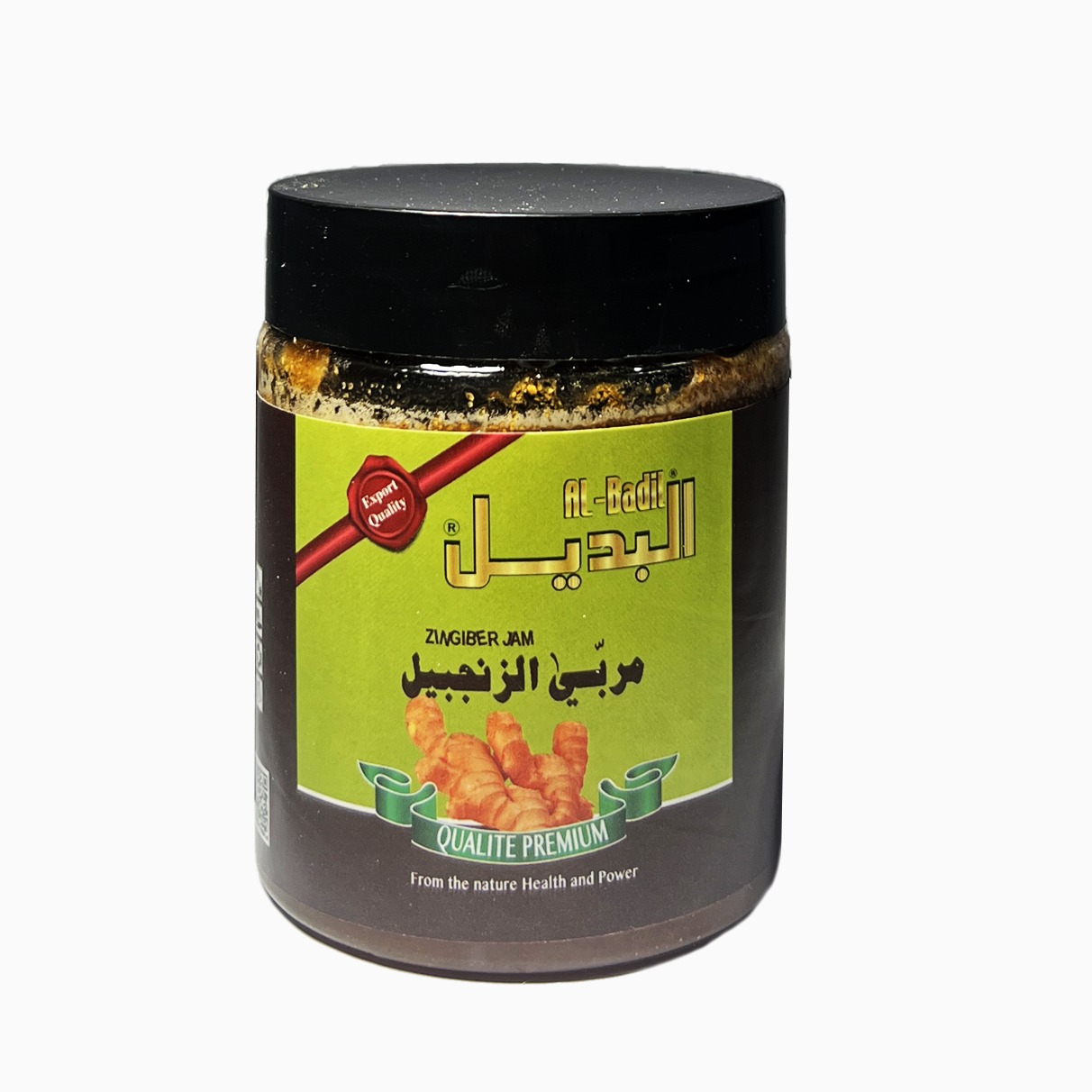 La confiture de gingembre AL-BADIL est un produit 100 % naturel, élaboré à partir de gingembre pur haché, de sucre et d’eau, sans aucun additif ni conservateur. Grâce à sa composition simple et naturelle, elle offre tous les bienfaits du gingembre pour soulager divers maux et renforcer le bien-être général. Pour un usage optimal, il est recommandé de consommer 3 à 4 petites cuillères par jour, afin de bénéficier de ses effets sur les douleurs articulaires, musculaires, migraines, nausées, perte d’appétit ou encore pour soutenir la récupération après un effort physique ou une chirurgie. Pratique et savoureuse, elle peut être consommée seule ou intégrée à vos boissons et préparations culinaires pour un apport quotidien naturel.